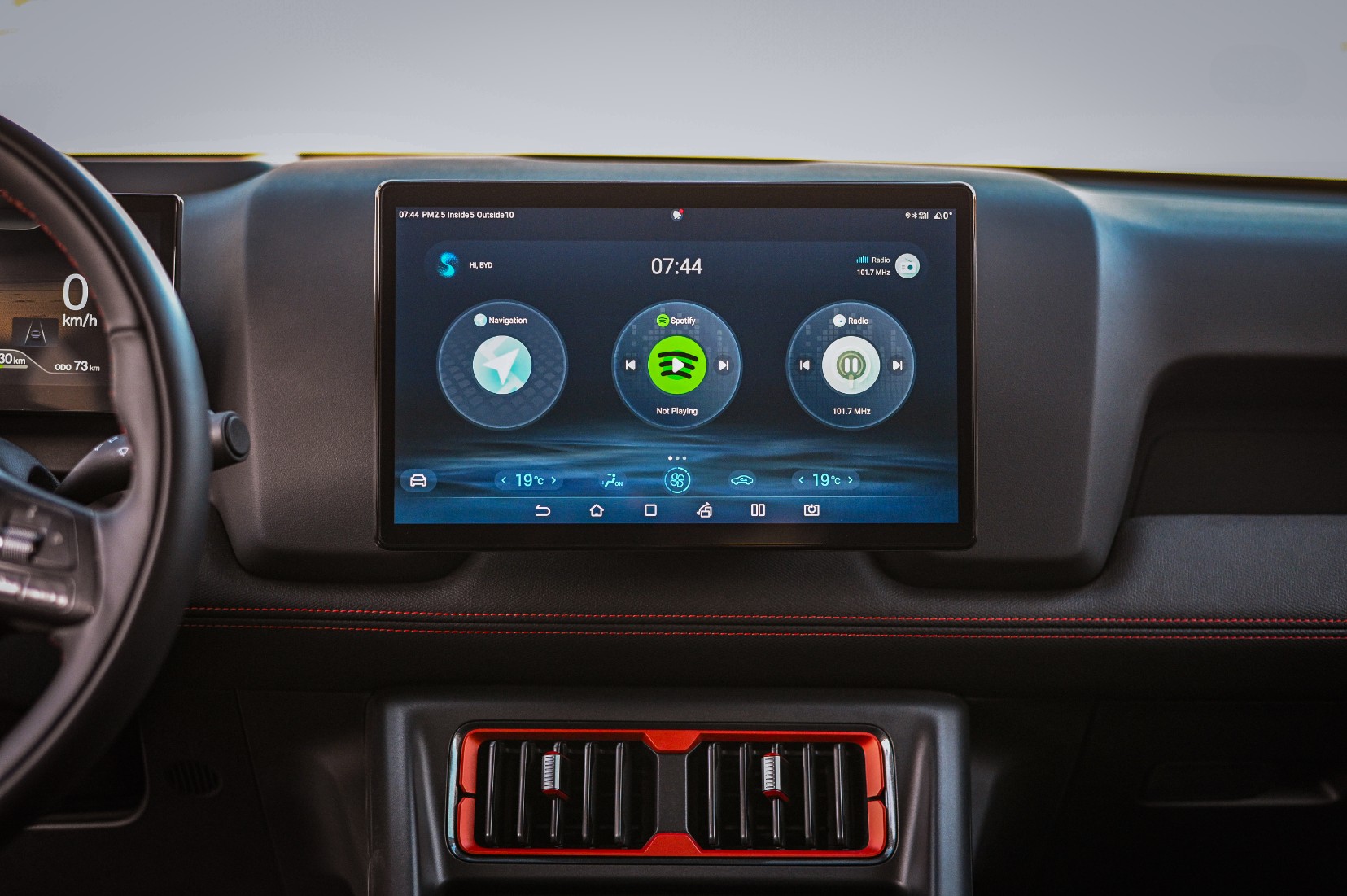 Passenger comfort is also prioritized, with rear seats reclined at 27 degrees and enhanced knee room, ensuring a relaxed posture for long journeys. At the heart of the cabin is a 12.8-inch rotating touchscreen display with wireless Apple CarPlay and Android Auto, paired with an 8-speaker sound system that delivers an immersive audio experience.