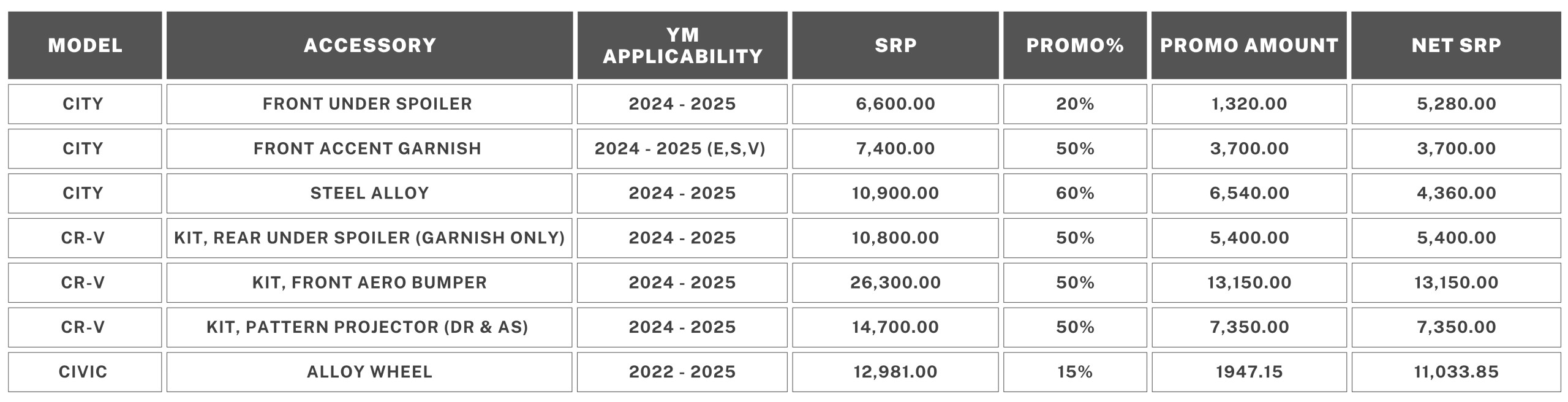 Lastly, HCPI is happy to announce its special accessories promo which lets customers save as much as P13,000, should they wish to upgrade the look of their Honda.
