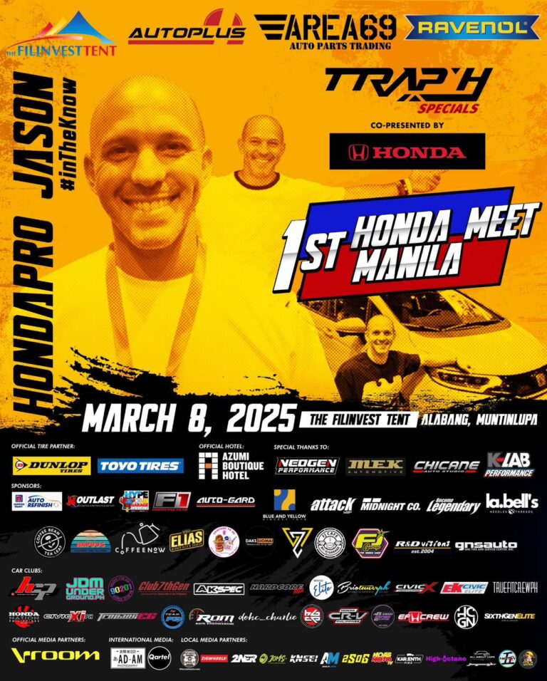This landmark gathering is made possible by Honda Cars Philippines, Inc. (HCPI) in partnership with Trap H, marking HondaPro Jason’s first-ever visit to Manila. The 1st Honda Meet Manila will bring together Honda enthusiasts and showcase a variety of customized Honda builds, with standout entries receiving special awards by the end of the night.