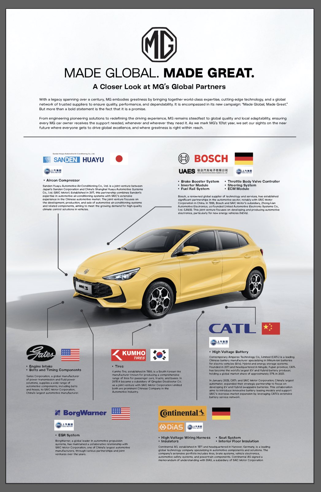 The unique setup allowed visitors to see up close the global expertise behind the MG3 Hybrid+. Each major component on display was sourced from renowned international brands, many of which have long-standing joint ventures with SAIC Motor, MG’s parent company.