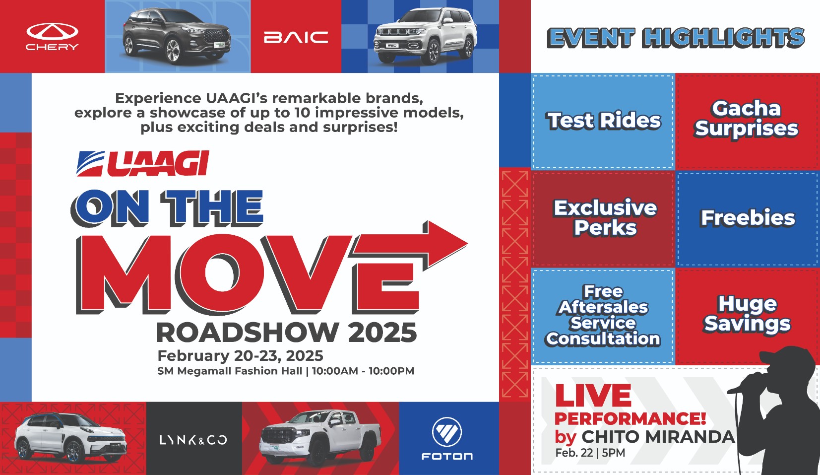 For a limited time, you can enjoy even bigger savings on select Lynk & Co models. Visit the UAAGI On The Move roadshow at SM Megamall Fashion Hall from February 20-23, 2025, and experience the cutting-edge innovation of Lynk & Co vehicles firsthand.